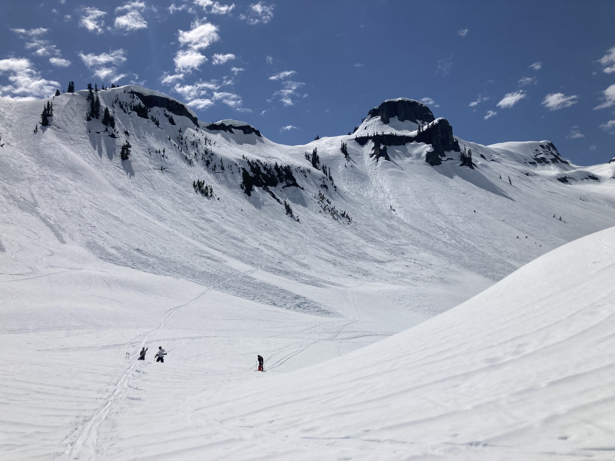 *Conditions Recap:* It was a *beautiful* day—barely any clouds until late afternoon when a little cover rolled in (which was actually nice for a break from the sun). But the snow got super sticky as it warmed up, making it tough to keep momentum. We were basically *stuck* at times trying to glide back, which was even worse for the splitboarders. Splitboarding… great sport, but man, days like that really test it (just kidding—kind of).